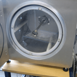 Das Schüttgut oder Pulver befindet sich in einem zylindrischen Behälter, welcher sich in der Vakuumkammer während der Behandlung dreht. Je nach Substrat kann die Ausführung und das Volumen angepasst werden.